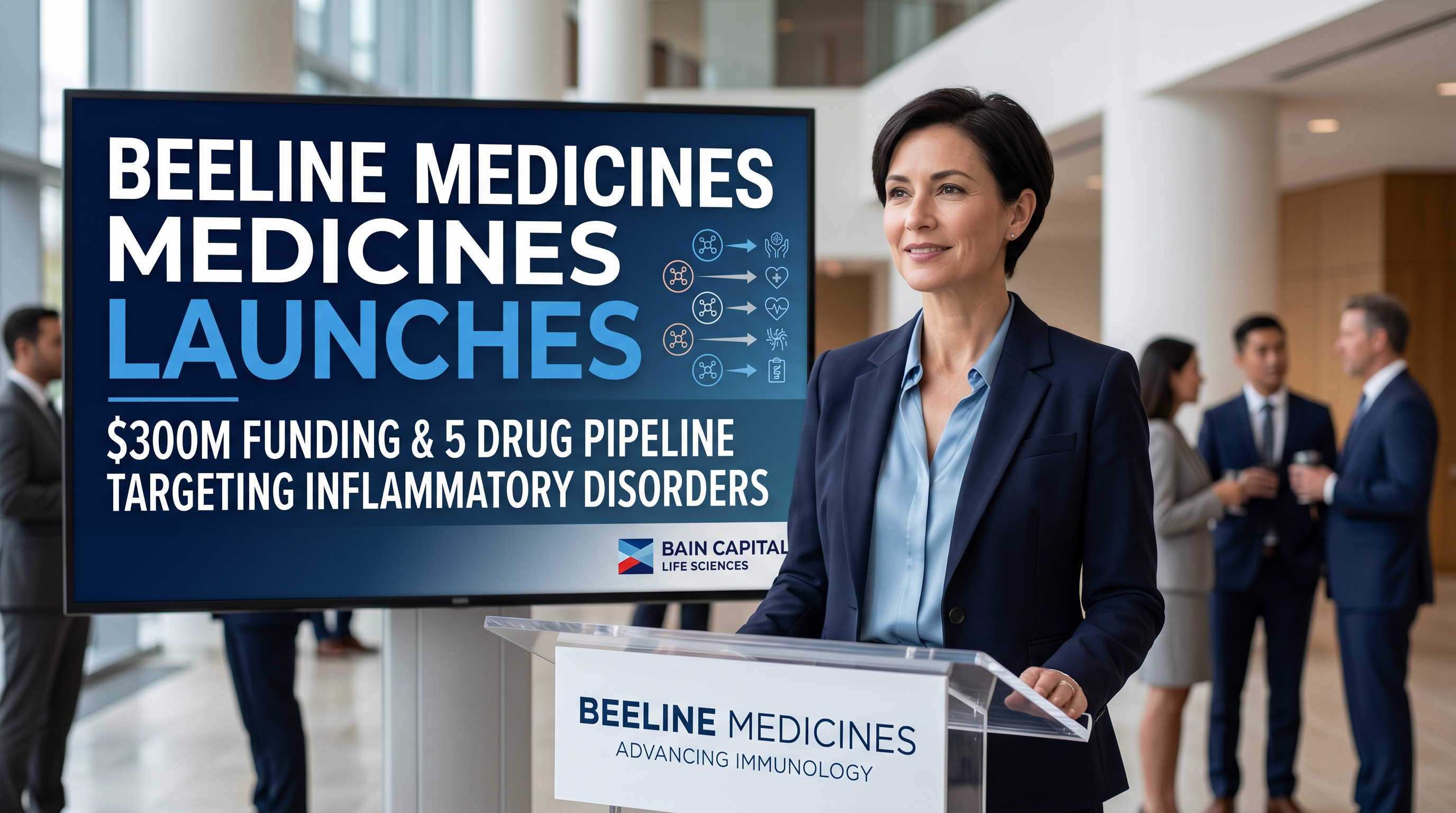 Beeline Medicines, a new biotech startup backed by Bain Capital Life Sciences, officially launched April 15, 2026, with $300 million in funding and five drugs licensed from Bristol Myers Squibb. The company will focus on inflammatory and immune disorders, beginning with development of an oral lupus treatment expected to reach Phase 2 data later this year.