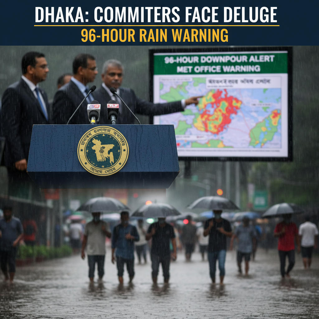 Dhaka Commuters Wade Through Heavy Rain as Met Office Warns of 96-Hour Downpour