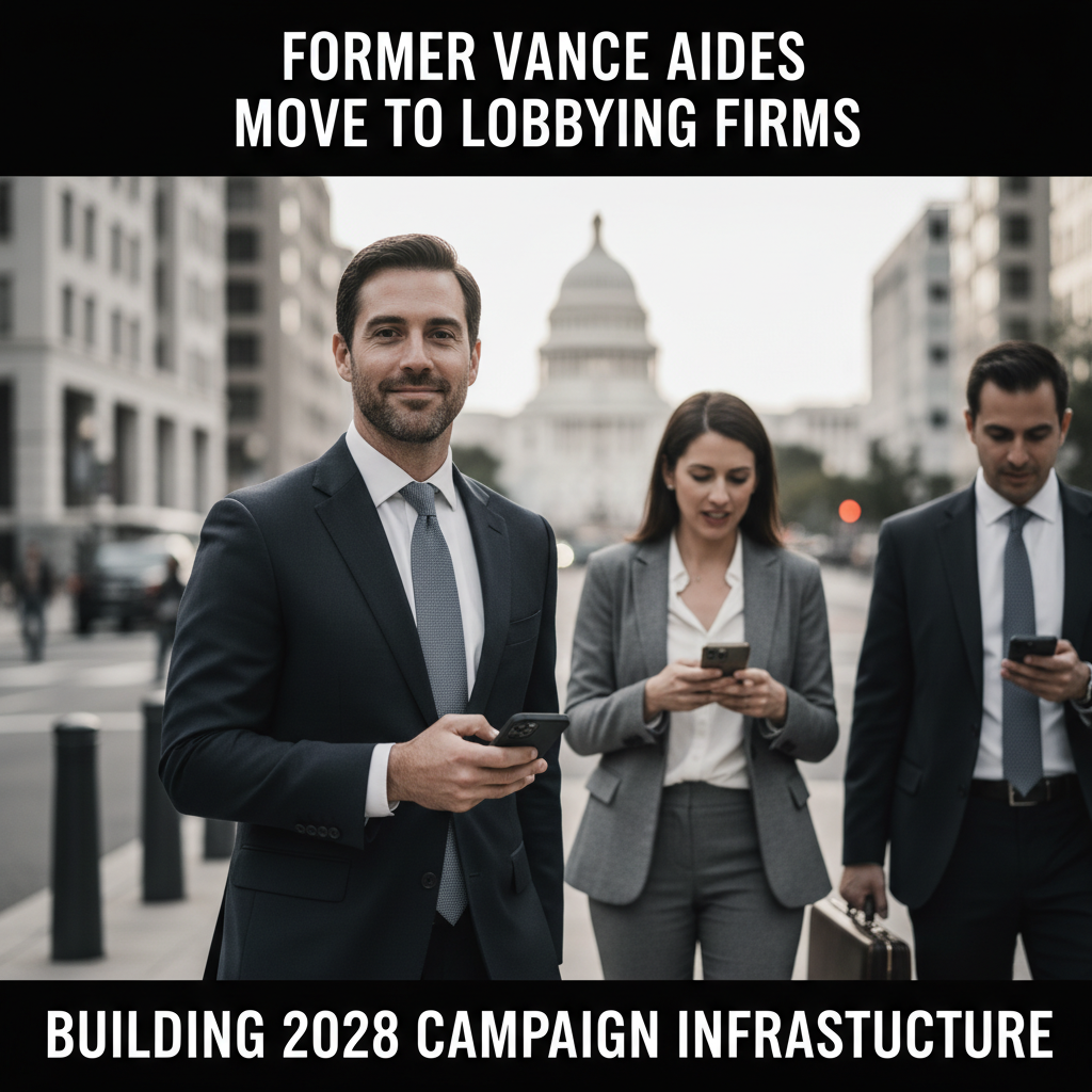 Three senior aides to Vice President JD Vance have joined major Washington lobbying firms in the past two months, expanding his network of policy and fundraising connections ahead of a potential 2028 presidential run.